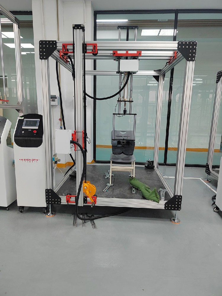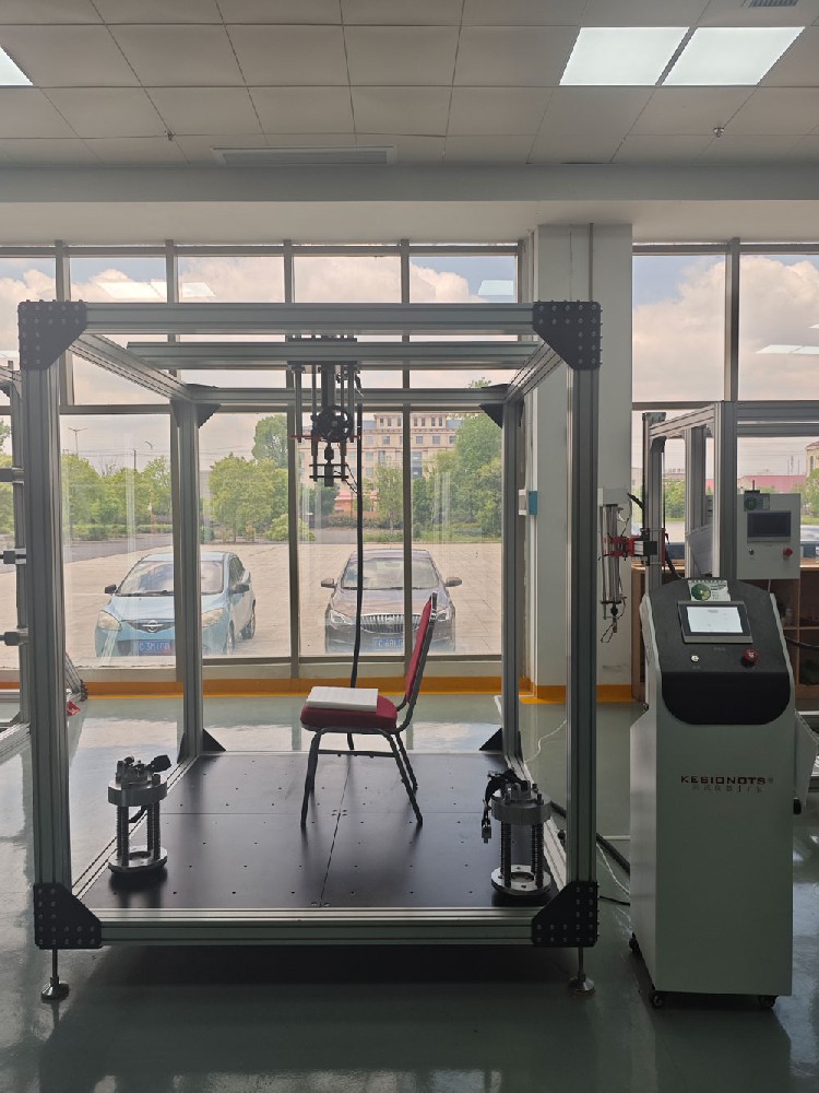 主要检测椅座椅背耐久性,通过模拟使用者日复一日地坐下、起身、倚靠、滑动等动作,数万次甚至数十万次的自动化循环测试,来预测椅子的使用寿命,并暴露其设计或制造中的薄弱环节。