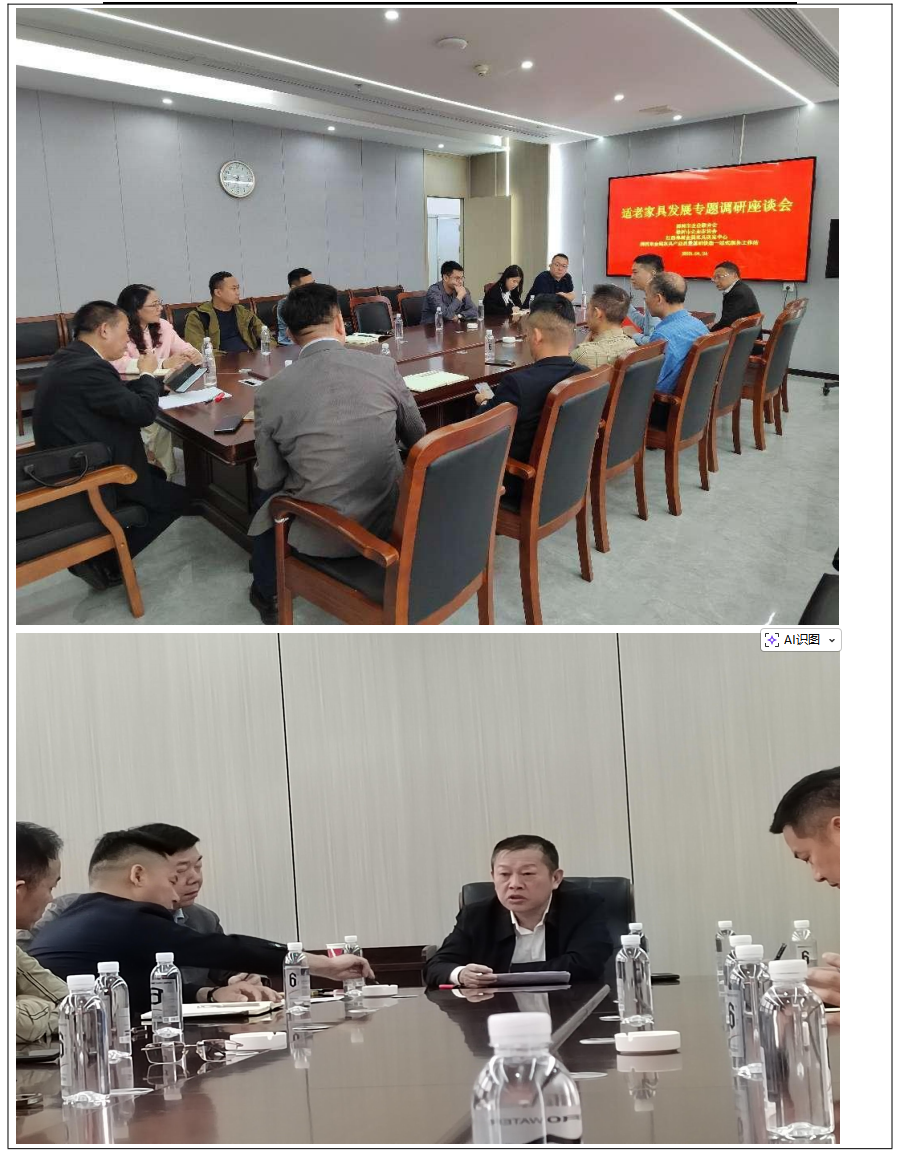2025 年 4 月 24 日上午 9:30 在江西樟树金属家具检验检测有限公司五楼会议室组织召开适老家 具专题调研座谈会。会议由周雄主持,会议纪要如下: 一、会议首先由黄局长发言,介绍樟树发展历史及樟树产业发展现状,目前中药企业 502 家, 高新技术企业 43 家、获评四星级国家工业化示范基地、医药产业集群,为江西省五星级产业集群, 樟树金属家具产业集群。樟树的工业企业一千余家、金属家具产业及相配套产业 207 家。金属家具 涵盖了医疗器械、城市家具、木制家具、殡葬、户外家具、环保家具等,我们欢迎李总企业到樟树 发展。 二、中匠福集团董事长李志业发言:感谢周院和孙科的邀请,来樟树学习交流。企业名的意思 是中国工匠匠心的祝福,为老年人更健康幸福的而取名。2014 年成立,适老家具的意思是适合老年 人用的家具,例如餐桌、餐椅、床、柜子等。去年国务院的一号文提到银发经济,大力发展老年人 用品,特别是去年国补的补贴力度非常大。昨天去参观了樟树多家企业,很多企业有专门的展厅, 客户一来能直观了解产品,有一些展厅缺乏场景。樟树还有一群特殊人群,业务员遍布全国各地, 樟树的基础非常好,在樟树做这件事天时地利人和。 三、周雄发言:这次邀请李总来樟树参观交流,适老家具的发展前景很好,樟树金属家具研发 中心落户在樟树,都去在座的各个企业参观,在樟树有发展适老家具产业的基础、有渠道优势、适 老家具再下一个十年里新的赛道,并且量比较大。广州中匠福健康产业股份有限公司有着多年的人 才积累、技术积累、很多项发明专利、项目的业绩积累。它在广东省政府的口碑市非常不错的,广 东省民政厅把广东老龄产业研究院放在中匠福公司,还承担了很多国家标准的制定。中匠福的优势: 1、适老化产品技术标准有一套完整的技术标准体系,不管是养老机构还是居家适老化的改造都有完 整的技术标准和方案。2、产品供应链整合方面涉及到产品的标准检验、供应链的控制。3.市场应用 的领域。政府 90%的政策在于居家养老,居家养老改造的项目会越来越多。大家互相交流学习。